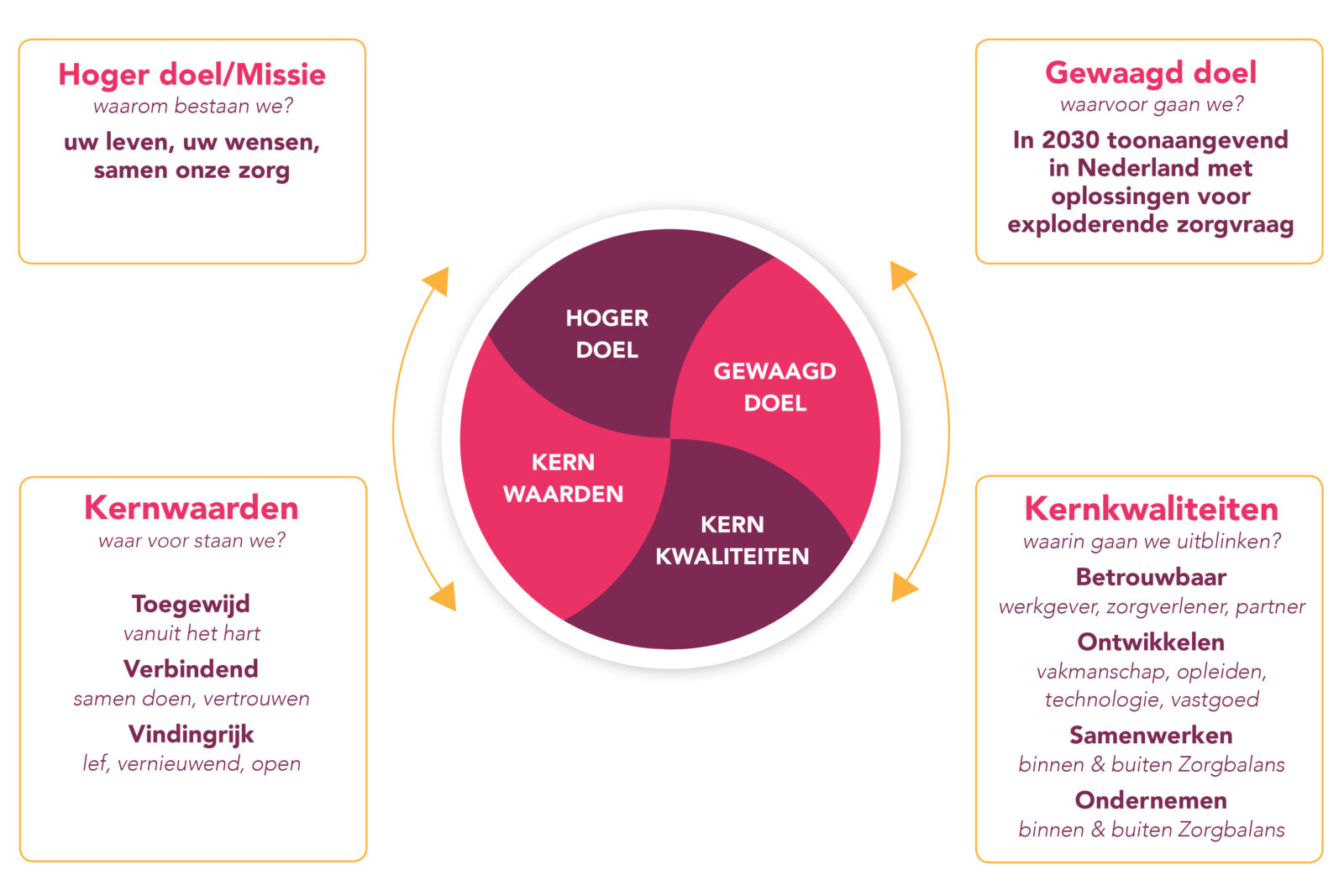 De visie van Zorgbalans is nog steeds relevant en actueel en sluit aan bij de landelijke ontwikkelingen van GALA, WOZO en IZA. De huidige ontwikkelingen vragen om nog meer de aandacht te richten op ‘Anders werken’ en ‘Onze medewerkers doen ertoe’. Daarnaast is meer focus nodig op de verschuiving van formele naar informele zorg (samen leven, samen zorgen). Dit is terug te vinden in de strategie die in 2023 is herijkt.