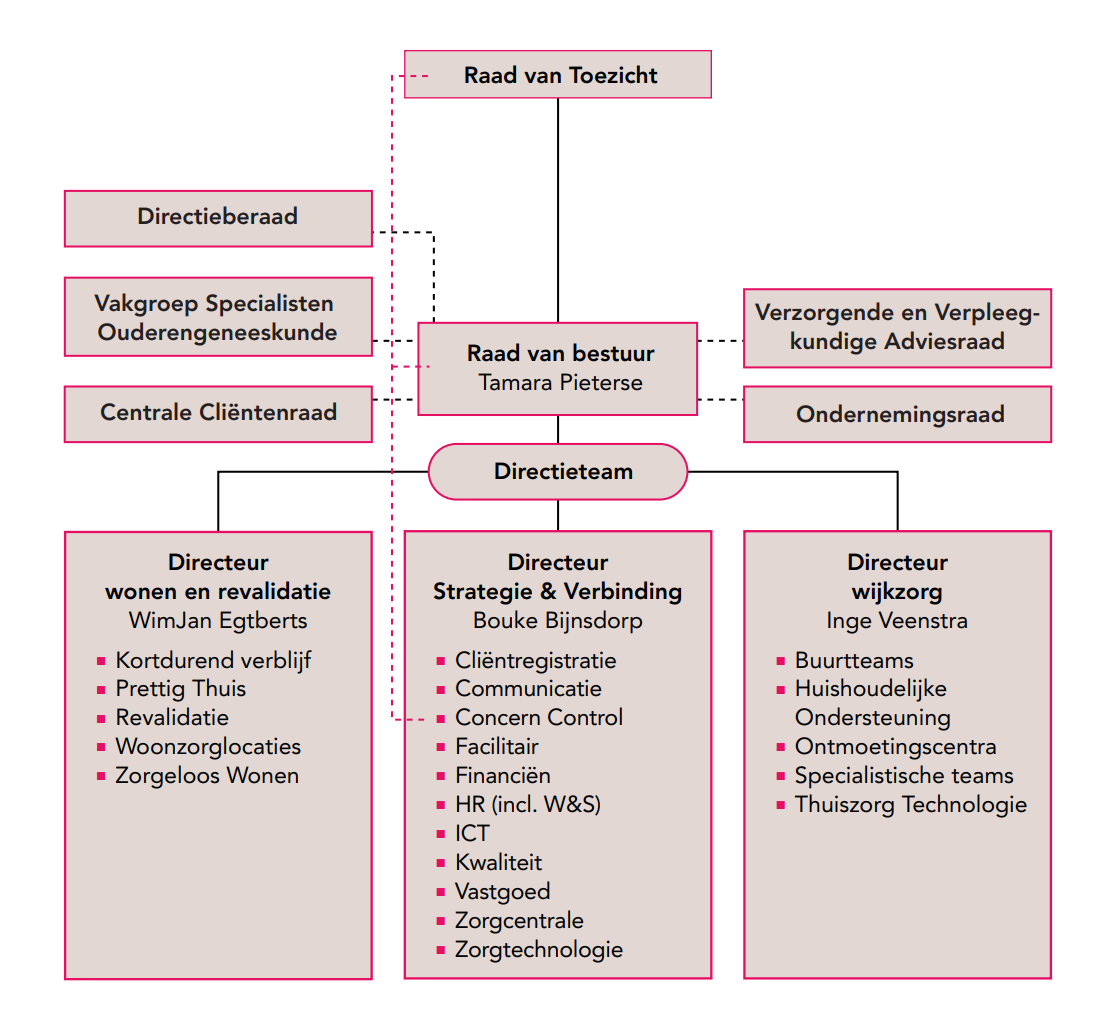 In het licht van de landelijke VWS-programma’s WOZO, GALA en IZA, die als doel hebben dat partijen uit zorg, ondersteuning en welzijn gaan samenwerken aan toekomstbestendige zorg in Nederland, zijn regionale samenwerkingen tussen zorgorganisaties onontbeerlijk. Het is belangrijk dat ook de toezichthouders dergelijke samenwerkingen onderschrijven en daarin investeren. Vanuit dat gezichtspunt heeft in oktober 2023 net als het jaar daarvoor, de RvT deelgenomen aan een bijeenkomst van de toezichthouders van de VVT-organisaties in Zuid-Kennemerland. In deze bijeenkomst is aandacht besteed aan de gezamenlijke initiatieven die reeds lopen tussen de zorgorganisaties en de kansen die er zijn op verdere samenwerking, bijvoorbeeld in het kader van ‘wijkgerichte benadering’. Daarbij is onderkend dat de verbinding met andersoortige zorgorganisaties, denk aan huisartsen en ziekenhuizen, daarbij cruciaal is. Het oplossen van het arbeidsmarktvraagstuk is benoemd als één van de grootste opgaven van de zorgorganisaties, waarbij het wenselijk is om daar als regio samen in op te trekken.